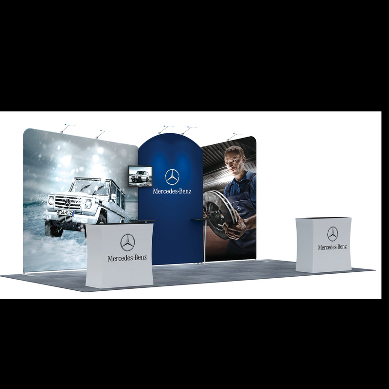 20Ft Standard Booth solution is a versatile combination of the standard ABCD backwalls to form unique designs for 20Ft booth space.