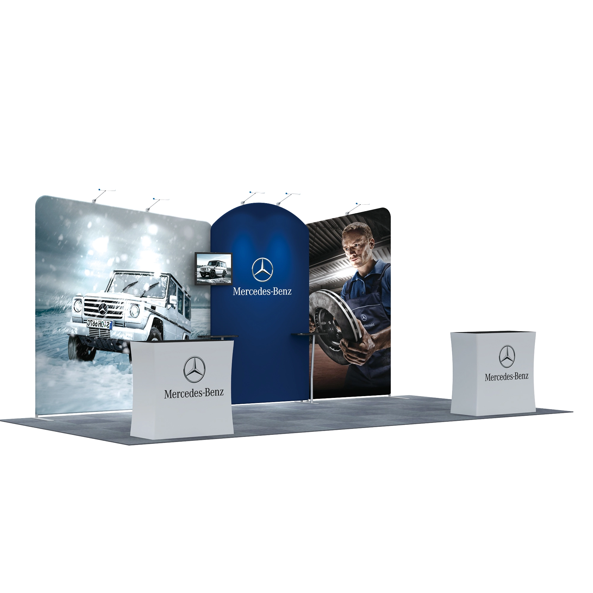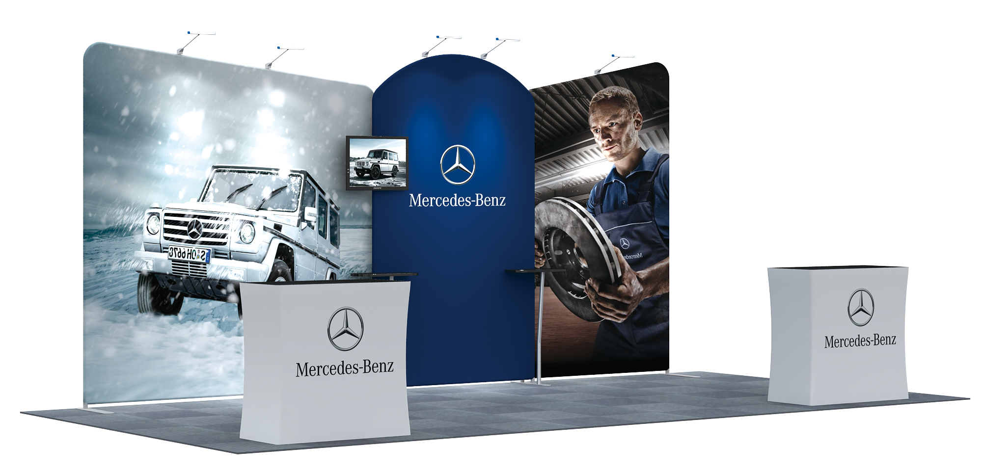 (1) Dye-sublimated Graphic for Backwall and Podium Counter