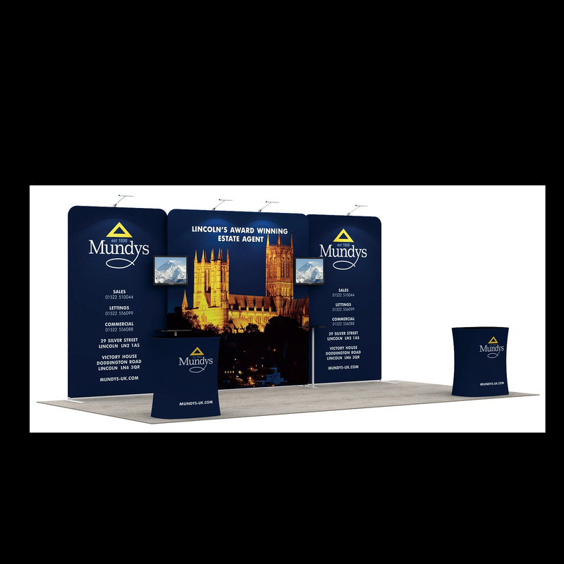 20Ft Standard Booth solution is a versatile combination of the standard ABCD backwalls to form unique designs for 20Ft booth space.