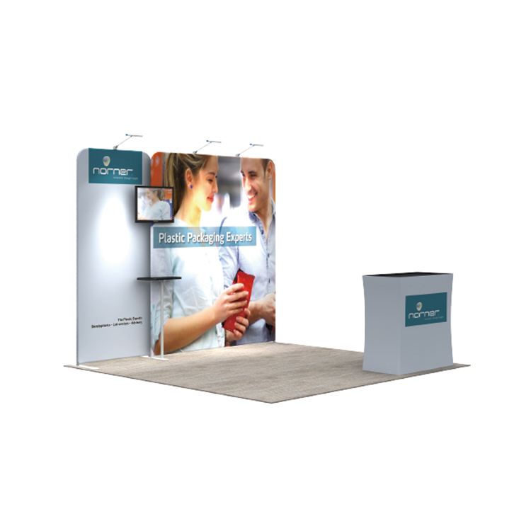 10Ft Standard Booth solution is a versatile combination of the standard ABCD backwalls to form unique designs for 10Ft booth space.