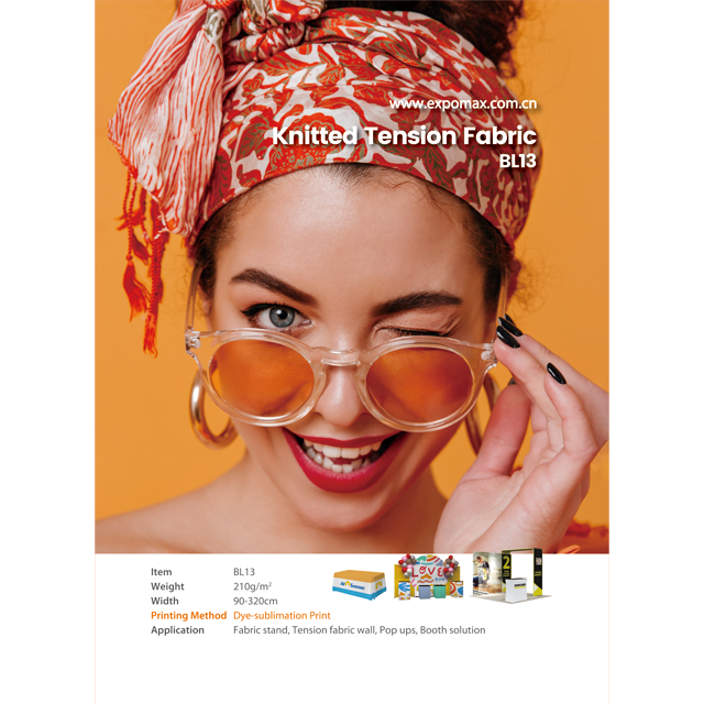 Knitted Tension Fabric BL13 is specially engineered for tension fabric displays that demand wrinkle resistance, vivid printing, and durability. Designed for high-performance applications such as tube booths, pop-up displays, and modular exhibition systems, this fabric offers a flawless surface and vibrant color accuracy thanks to our advanced dye sublimation printing. Whether for a trade show or a retail space, BL13 ensures your display looks sleek, seamless, and professional.