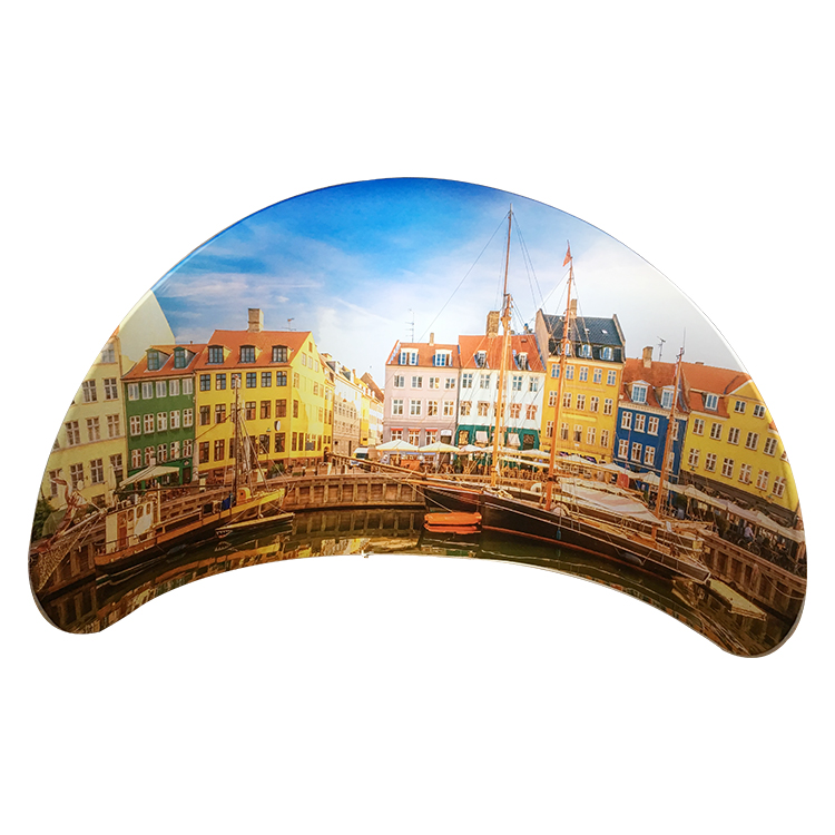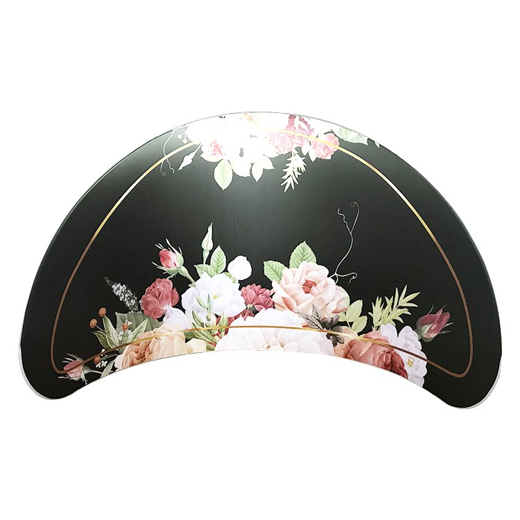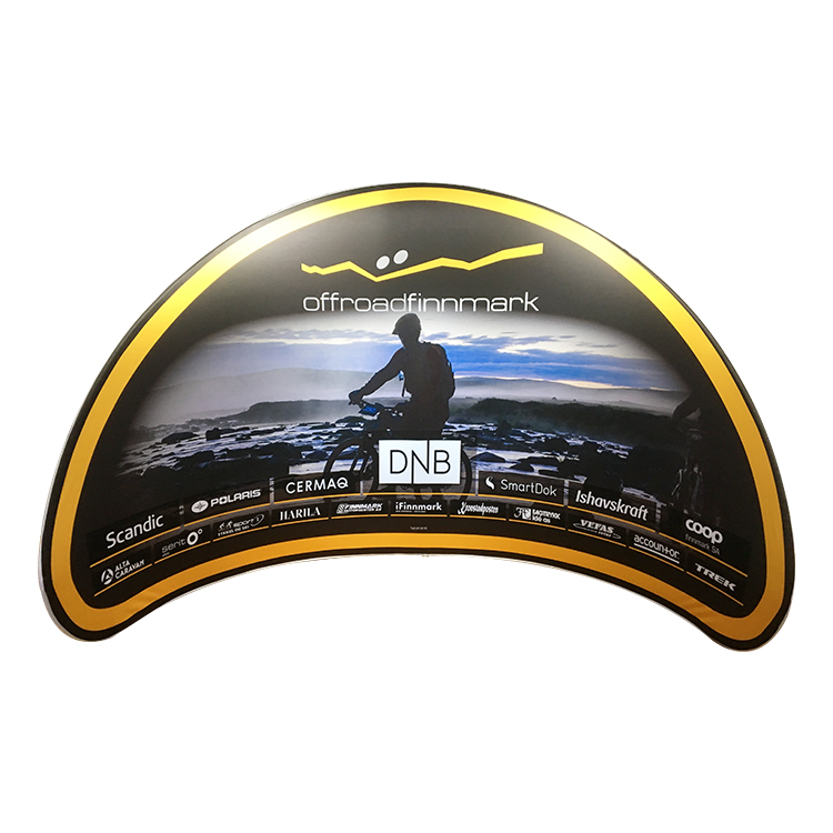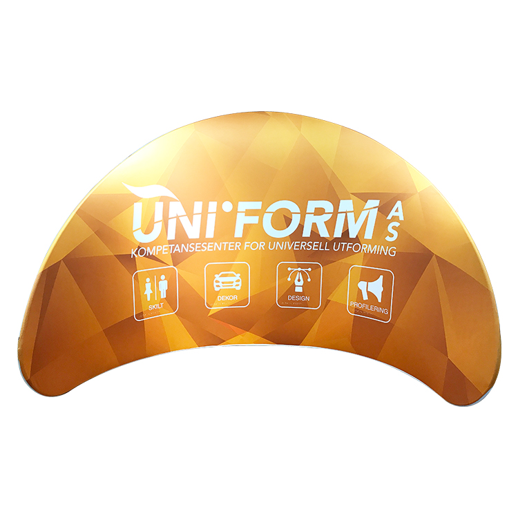 This semi-circle shape is perfect for creating a space for a private discussion. It is made with a light weight aluminum tube frame, and a pillow case fabric graphic that can be printed on either a single-side or on both sides. The Semi Circle is aluminum tubing frame is bungee-corded together and has button for ease of setup and handling. It comes equipped with all necessary hardware for assembly in a soft carrying case and can be set up by one or two individuals without any tools. The graphics are printed with dye sublimation and zip on the bottom to give the graphic tension. The graphic is printed in the United States, and is machine washable with replacements available. Optional lights clip easily to the top of each module. Full Kit includes: Frame, graphic, & drawstring bag.