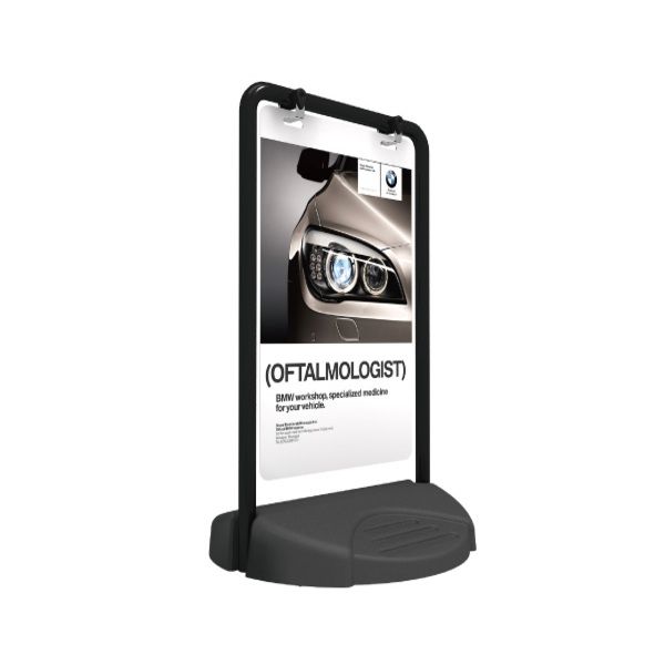 Its panel-hanger system allows fast graphic changes without tools, making it an ideal solution for businesses that update promotions frequently.