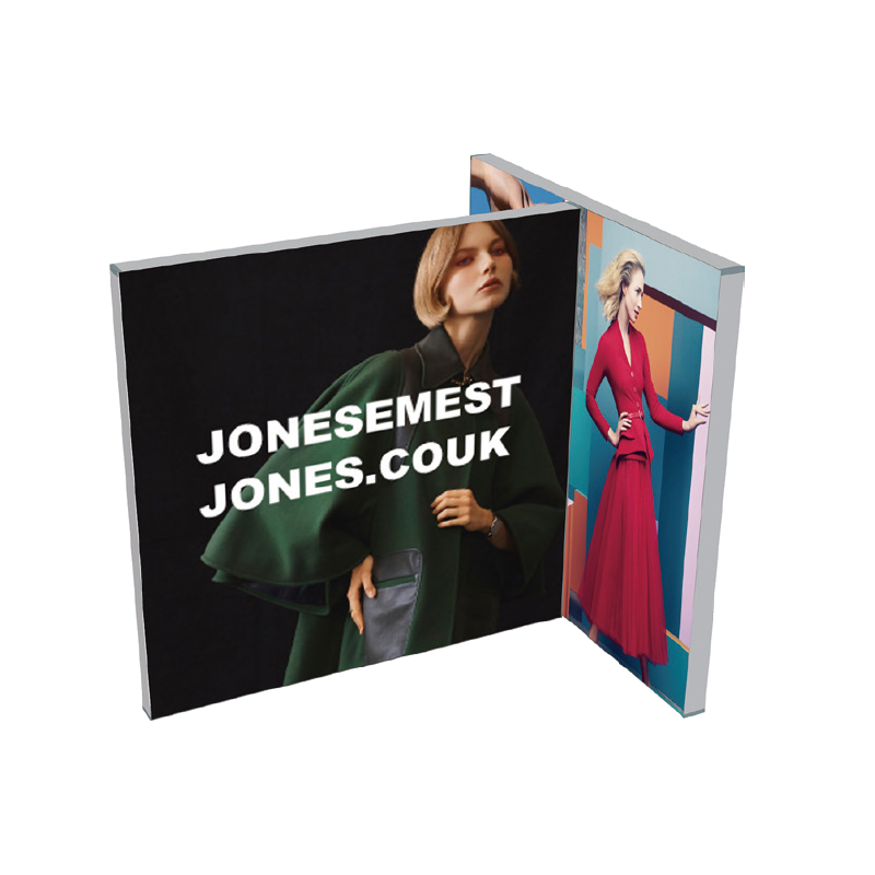 Innovative T-shape design – two 120mm SEG lightboxes combined to create a unique and bold display structure.