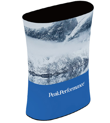 This Tube counter makes it easy to bring a horizontal work surface to your event. Plus, its graceful wrap-around graphic delivers one more way to put your important messaging front-and-center.