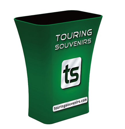 We print your custom graphic on stretch fabric that wraps around the counter and stretches over the top and bottom of the collapsing frame.