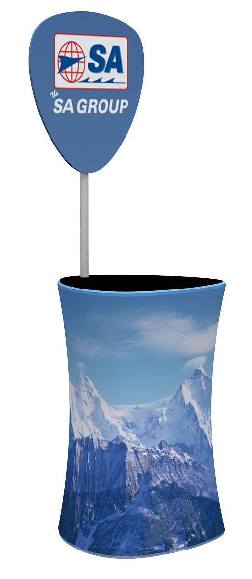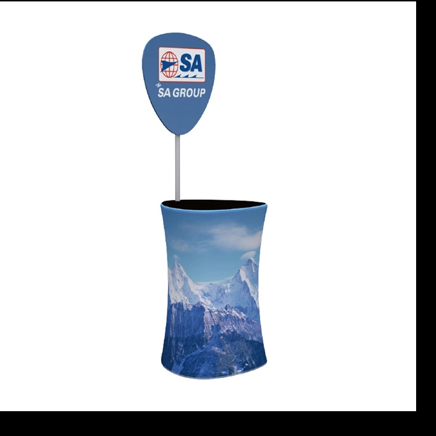 These fabric Promotion counter provide valuable marketing space with a stretch fabric base for graphics which are easily changeable and also machine washable. Everything for this promotion counter fits in a flat bag that's easy to carry on your shoulder or lay in your car trunk. Inside are a flat base with rubber feet, a flat black top, 3 aluminum pole sets, and your fabric graphic.